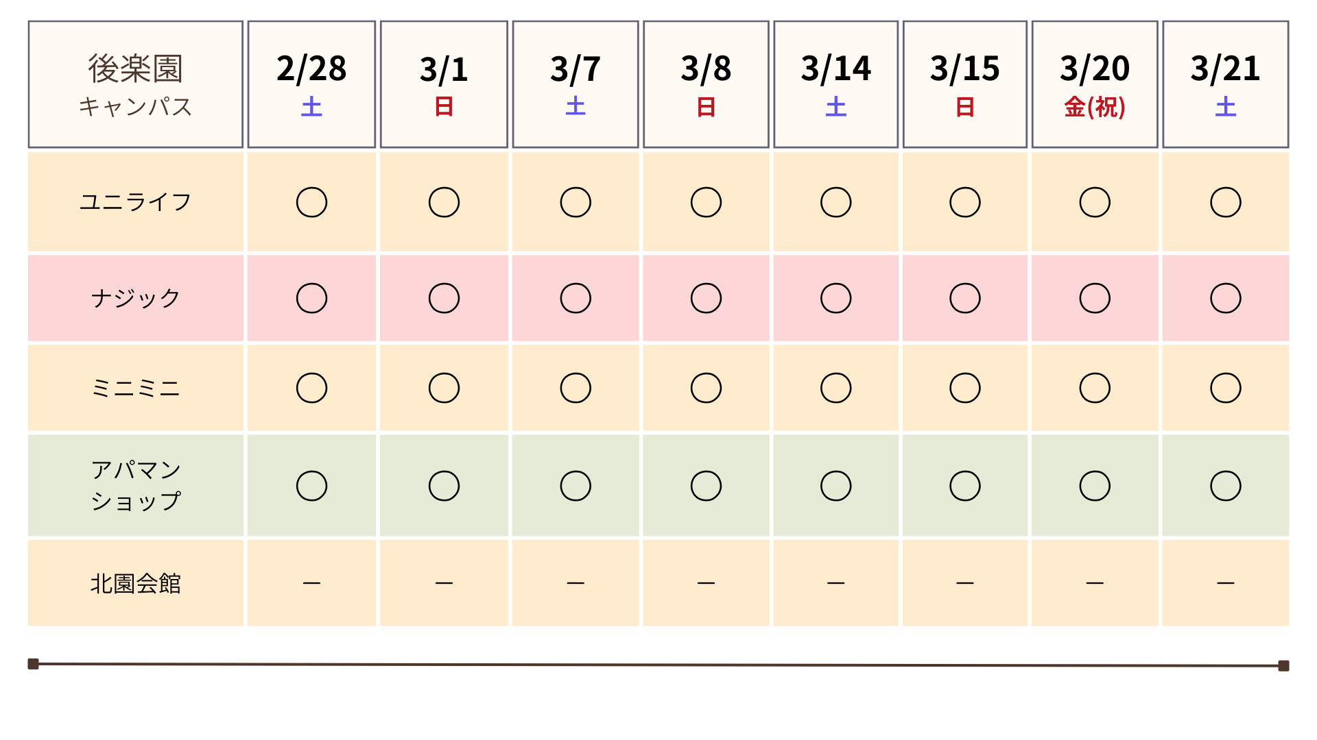 | 日時 | 2026年2月28日(土)~3月21日(土) 【左記期間中の土日祝のみ開催】 |