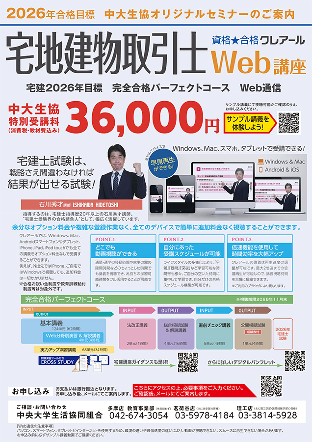 Home >資格にチャレンジ! >生協オリジナルセミナー >宅建合格講座