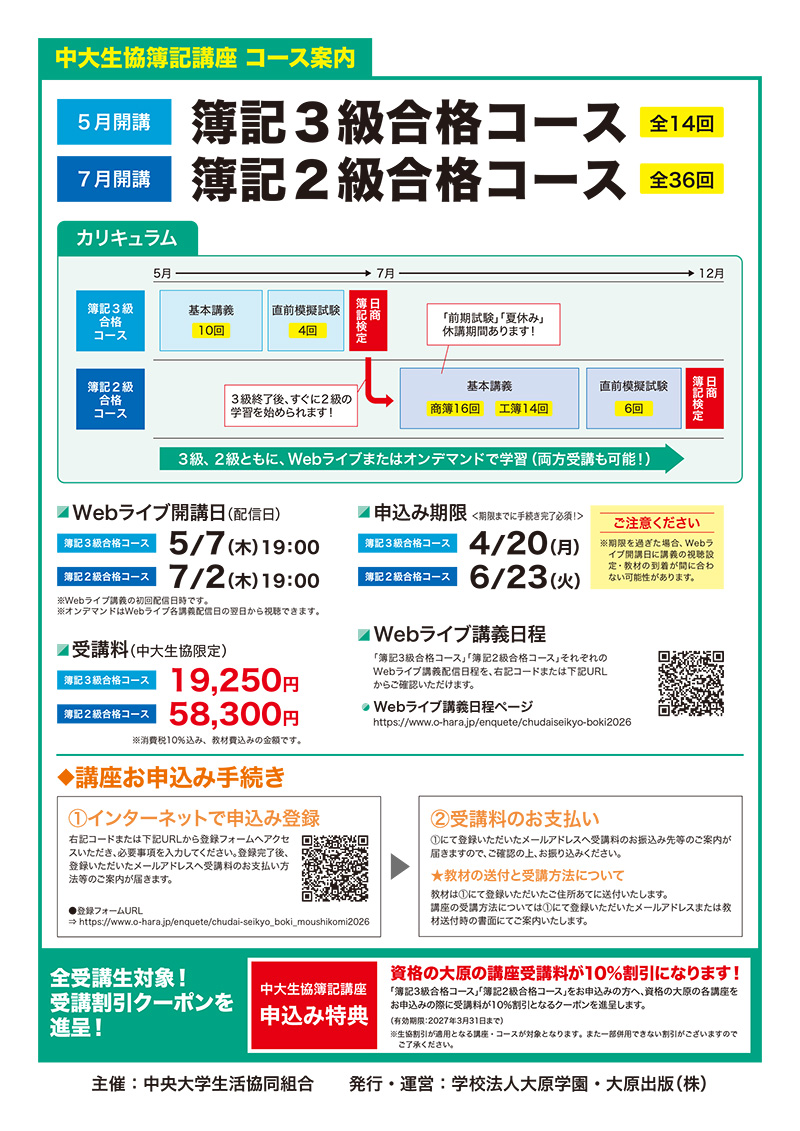 日商簿記検定3級・2級合格特別プラン開講! 提携:資格の大原